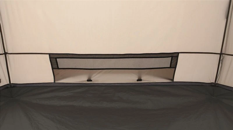 Na een goede nacht slapen met 6 personen in 1 ruimte wil je natuurlijk niet wakker worden in een muffe tent. Daarvoor is goede ventilatie essentieel. Het gaaspaneel in de ingang samen met de 2 grote bedekte dakopeningen en 1 lage ventilatieopening zorgt voor een goede luchtstroom en ventilatie. Zo behoud je een fijne frisse slaapplek, ook met een groep.